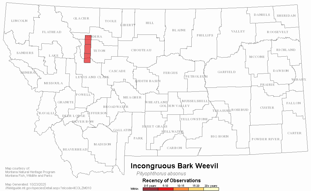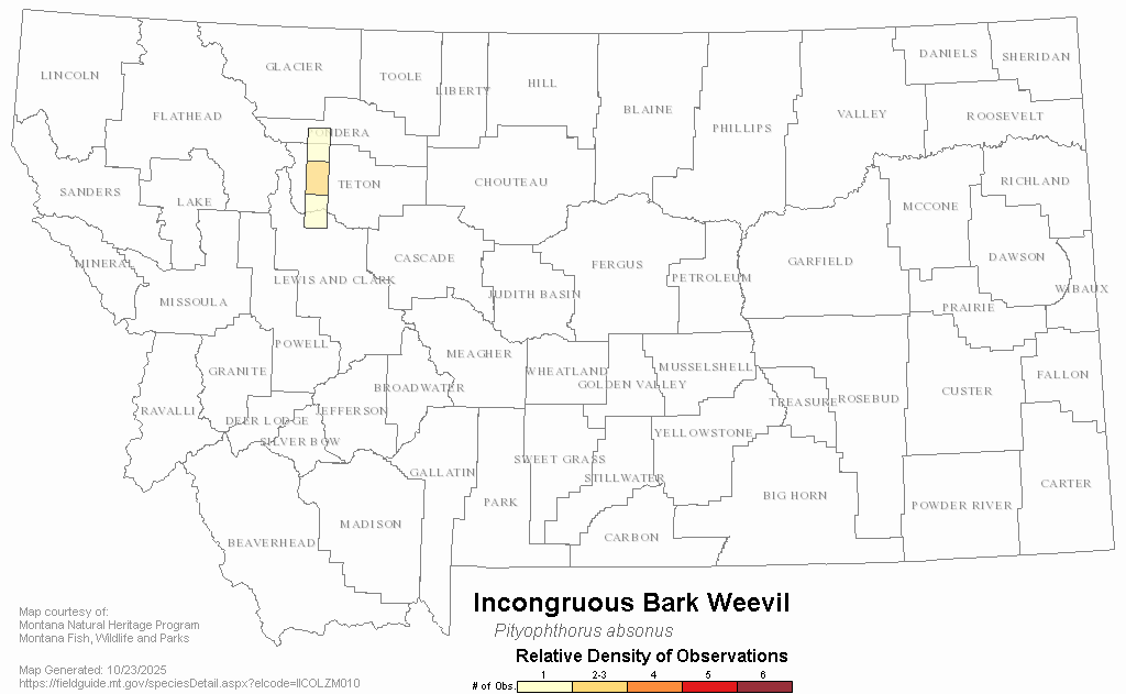 Incongruous Bark Weevil — Pityophthorus absonus.  Montana Field Guide.  .  Retrieved on , from
