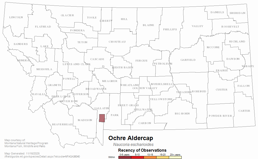 Ochre Aldercap — Naucoria escharioides.  Montana Field Guide.  .  Retrieved on , from
