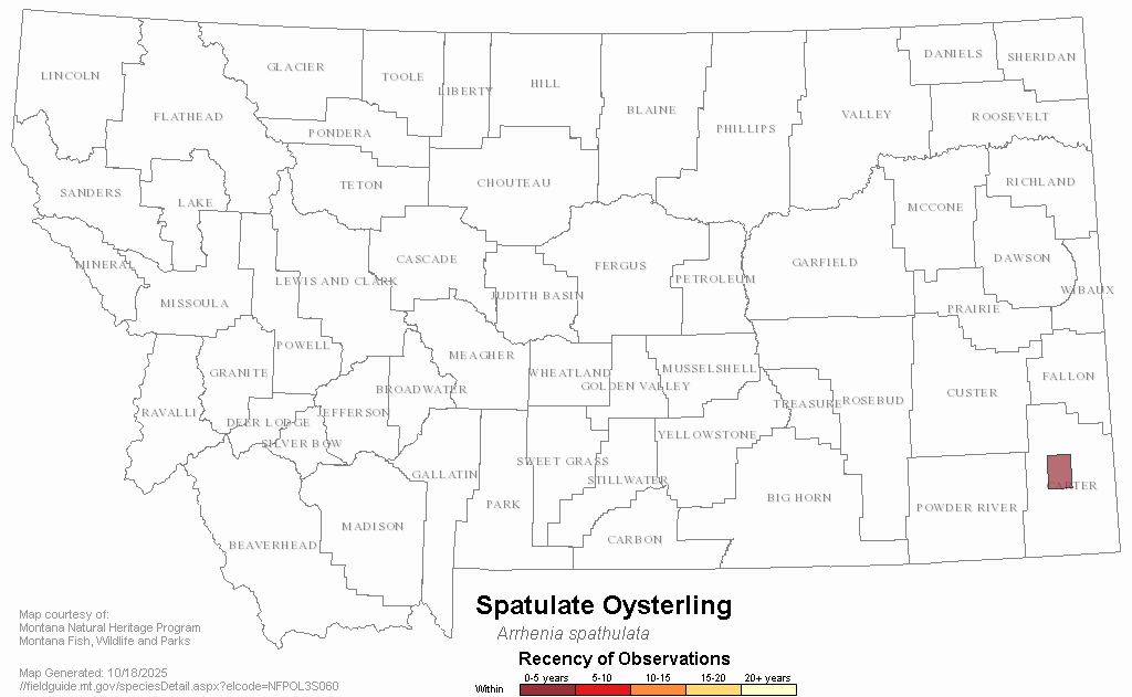 Spatulate Oysterling — Arrhenia spathulata.  Montana Field Guide.  .  Retrieved on , from