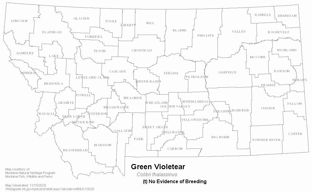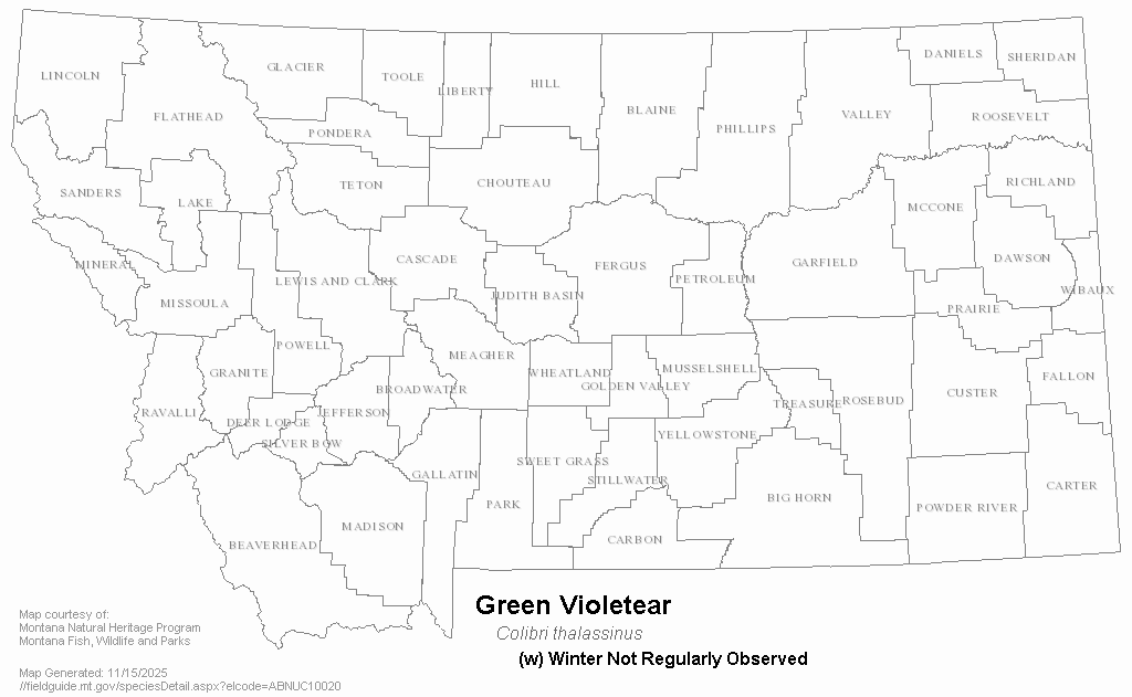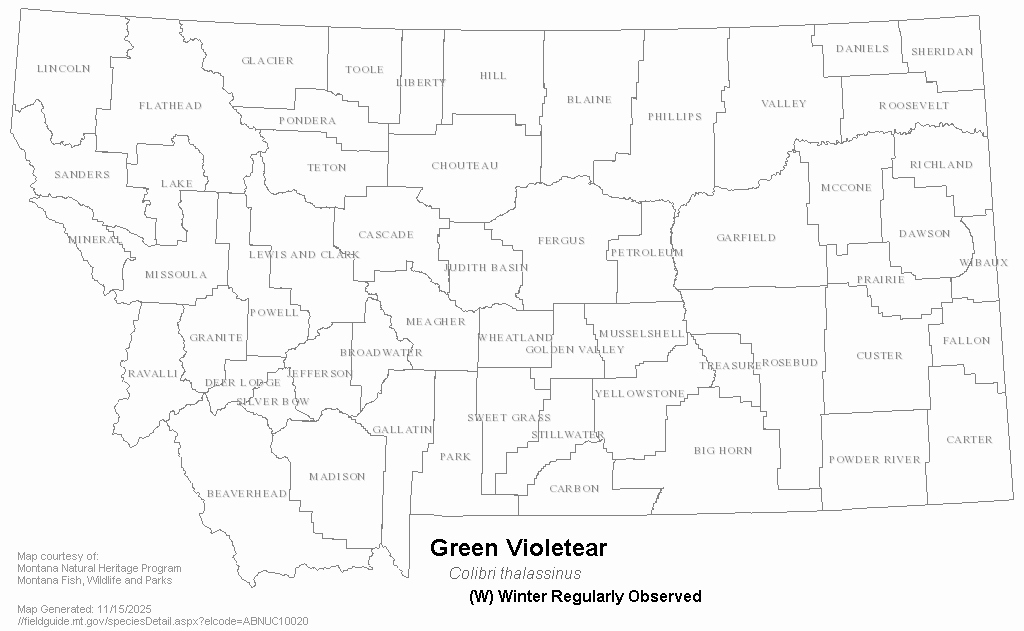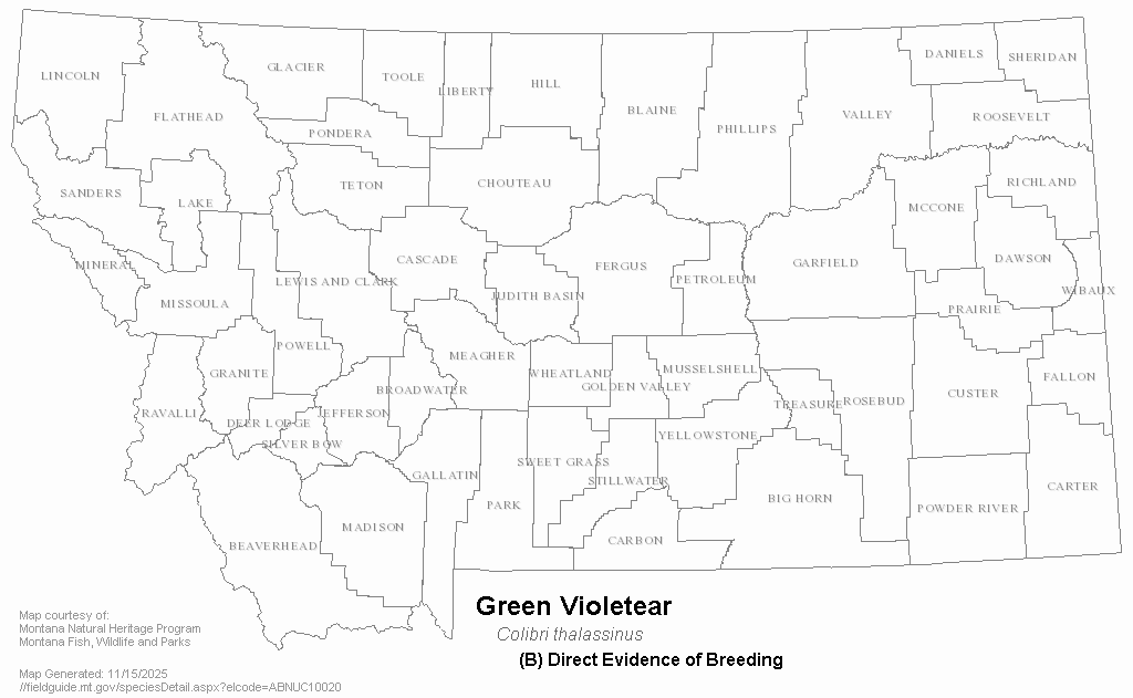 Green Violetear — Colibri thalassinus.  Montana Field Guide.  .  Retrieved on , from