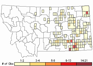 Maximum elevation: 1,286 m (4220 ft) in Cascade County (Gerald Painter, personal communication, MTNHP 2024).