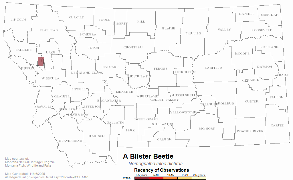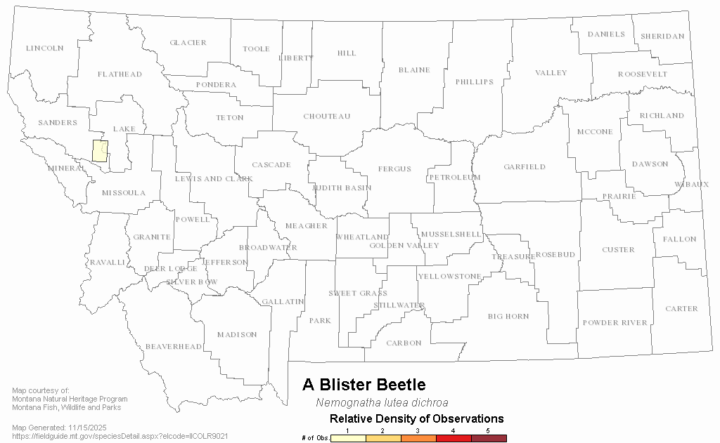 A Blister Beetle — Nemognatha lutea dichroa.  Montana Field Guide.  .  Retrieved on , from