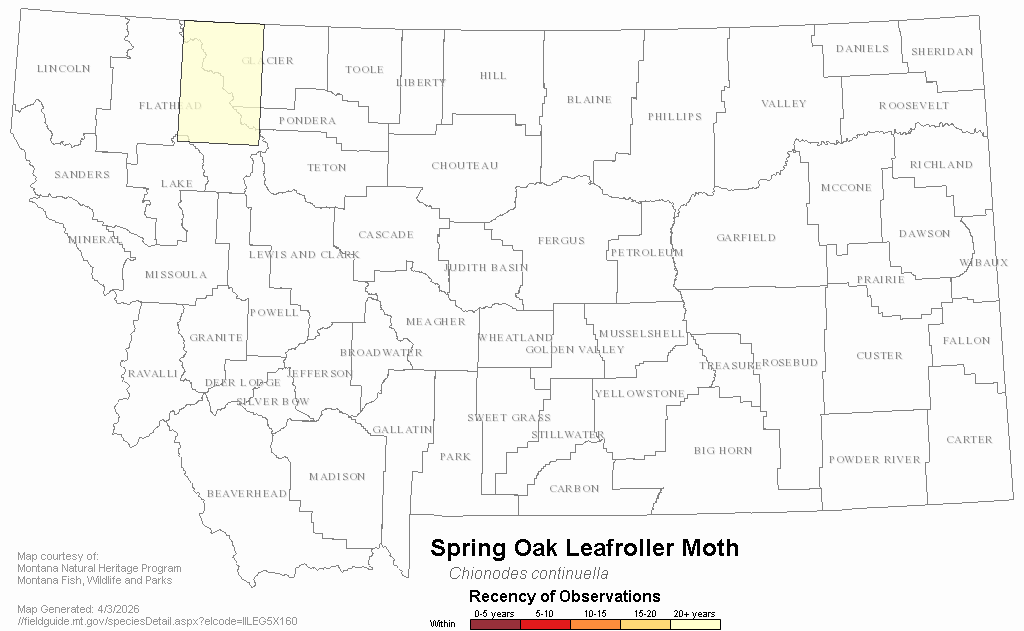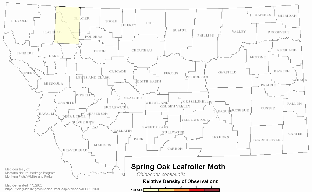 Spring Oak Leafroller Moth — Chionodes continuella.  Montana Field Guide.  .  Retrieved on , from