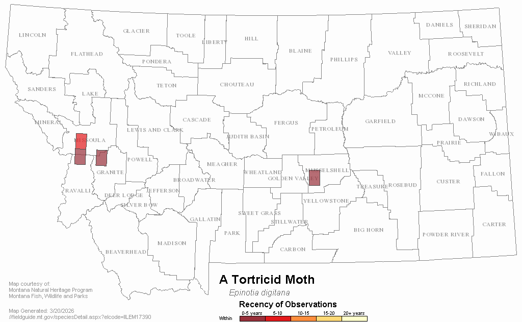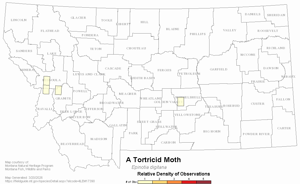 A Tortricid Moth — Epinotia digitana.  Montana Field Guide.  .  Retrieved on , from