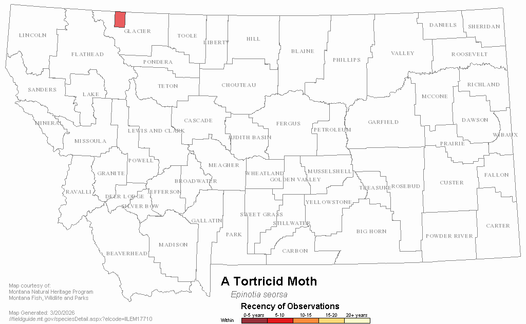 A Tortricid Moth — Epinotia seorsa.  Montana Field Guide.  .  Retrieved on , from