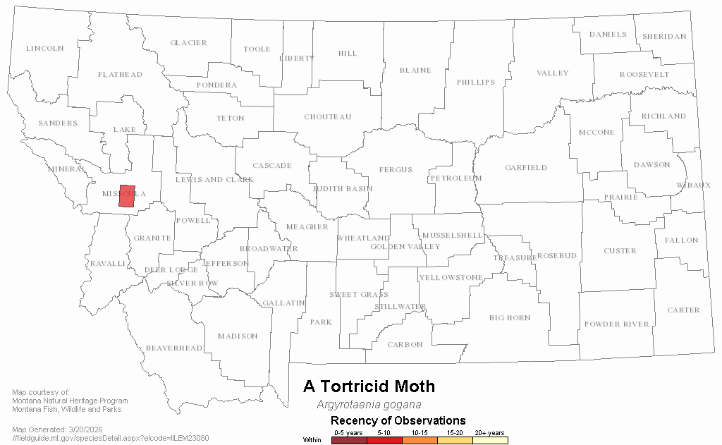 A Tortricid Moth — Argyrotaenia gogana.  Montana Field Guide.  .  Retrieved on , from