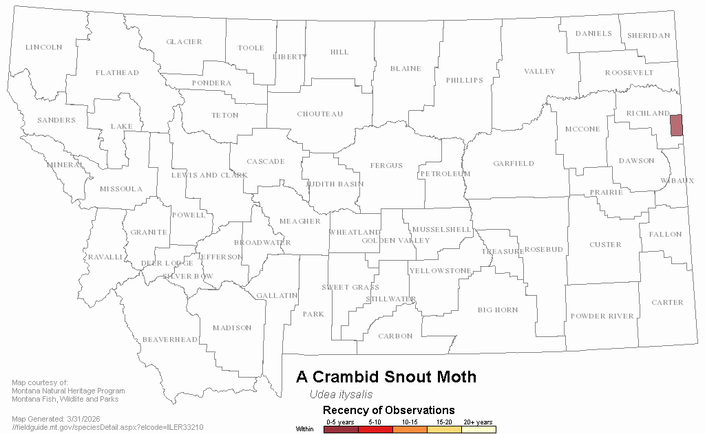 A Crambid Snout Moth — Udea itysalis.  Montana Field Guide.  .  Retrieved on , from