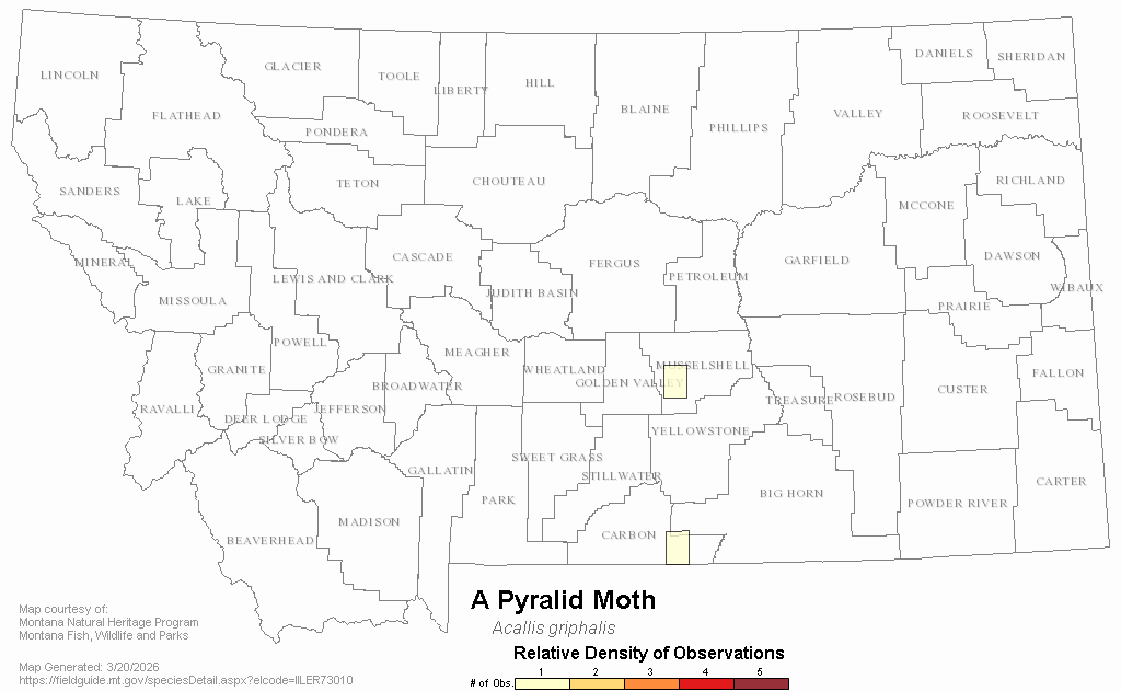 A Pyralid Moth — Acallis griphalis.  Montana Field Guide.  .  Retrieved on , from