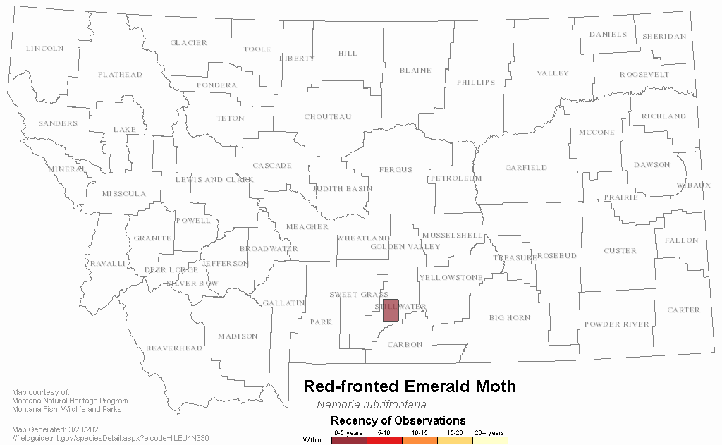 Red-fronted Emerald Moth — Nemoria rubrifrontaria.  Montana Field Guide.  .  Retrieved on , from