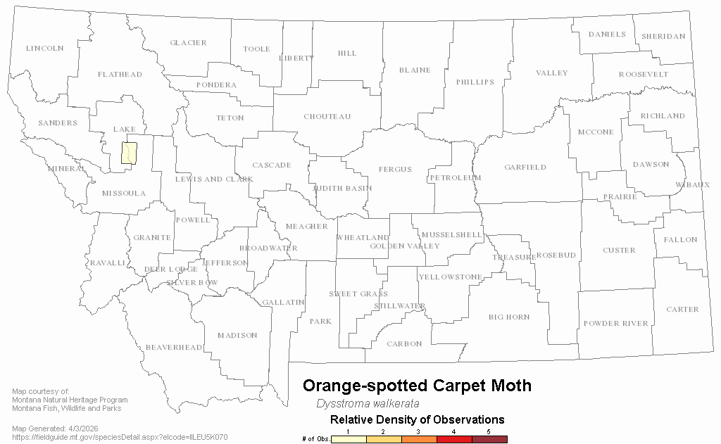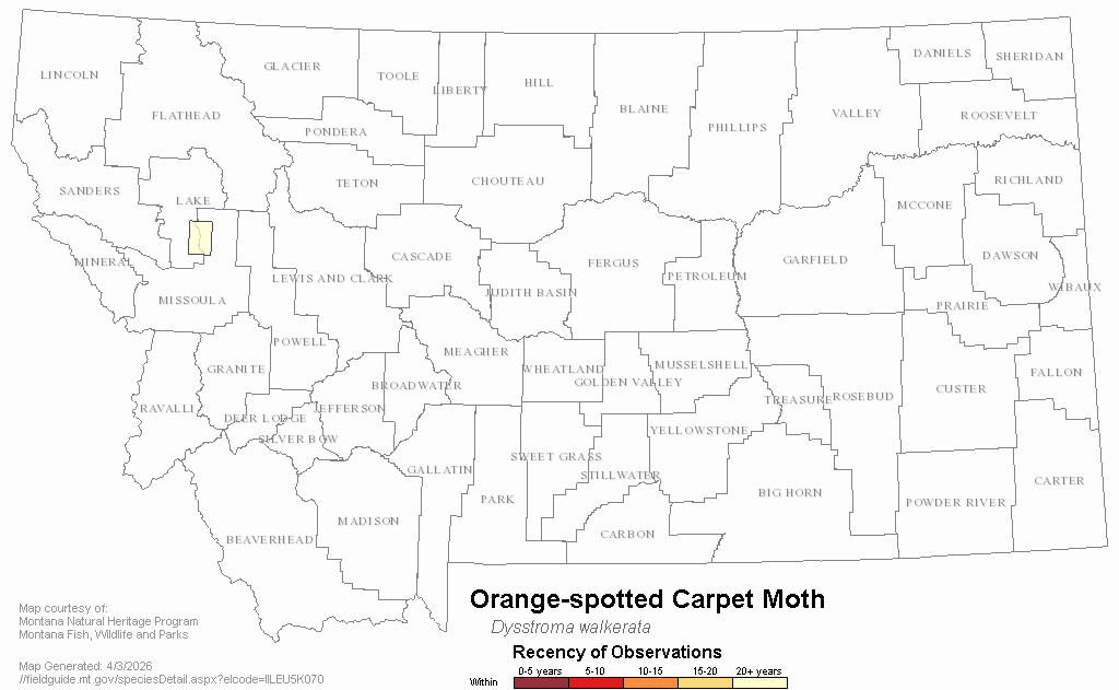 Orange-spotted Carpet Moth — Dysstroma walkerata.  Montana Field Guide.  .  Retrieved on , from