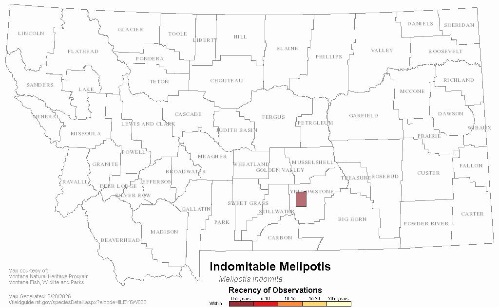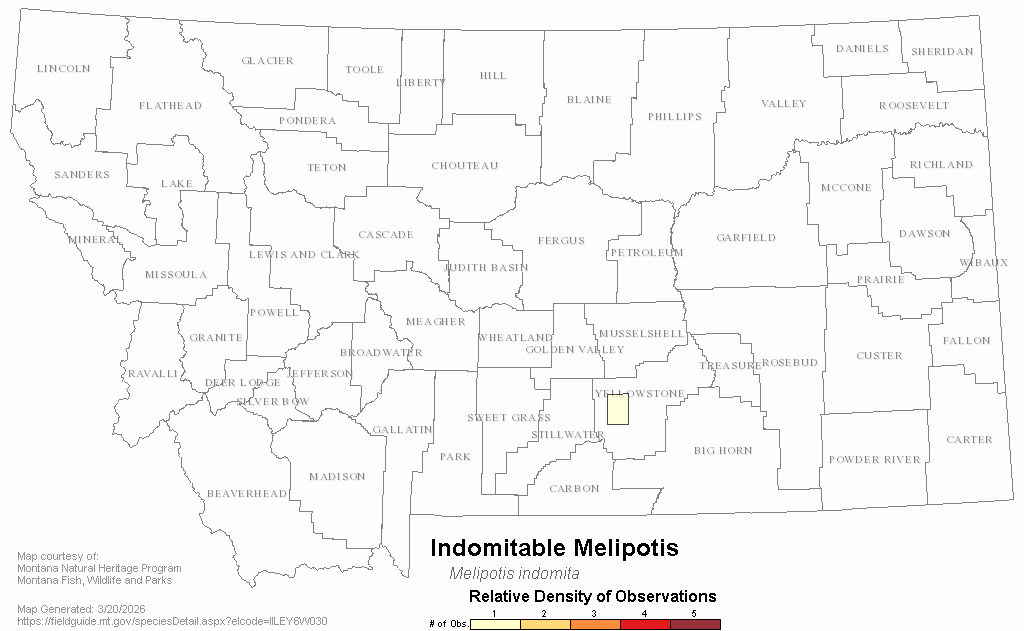 Indomitable Melipotis — Melipotis indomita.  Montana Field Guide.  .  Retrieved on , from