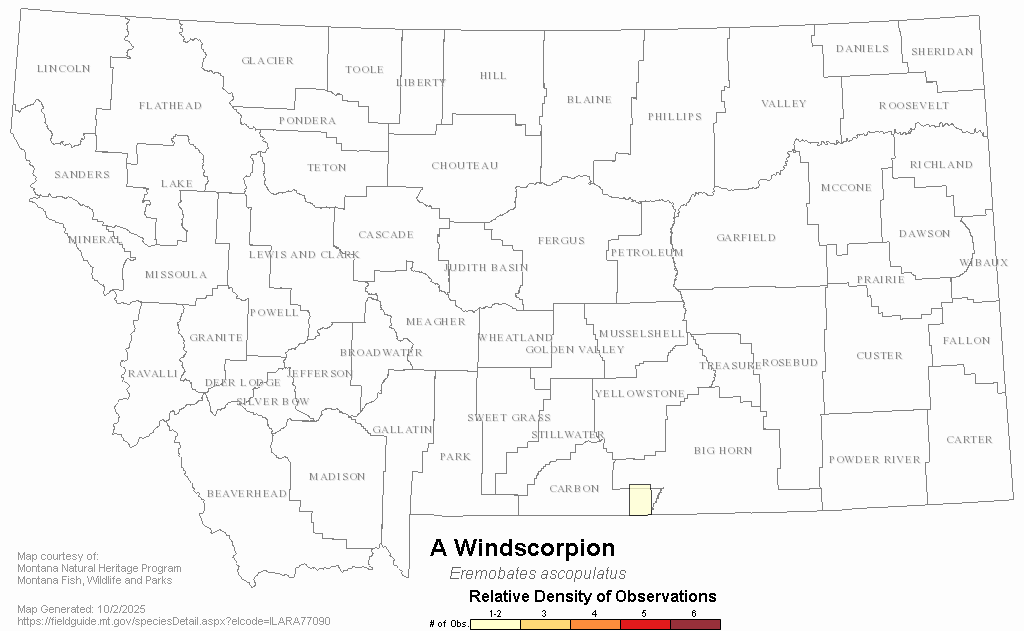 A Windscorpion — Eremobates ascopulatus.  Montana Field Guide.  .  Retrieved on , from