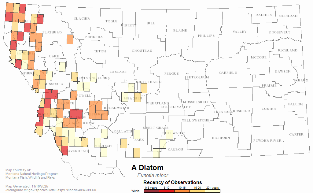 Additional ReferencesLegend: View Online Publication Do you know of a citation we're missing? Roeder, T. 1966. Ecology of the diatom communities of the upper Madison River system, Yellowstone National Park. Ph.D. Dissertation. Bozeman, MT: Montana State University. 67 p. Whalen, S.C. 1979. The chemical limnology and limnetic primary production of the Tongue River Reservoir, Montana. M.Sc. Thesis. Bozeman, MT: Montana State University. 194 p.