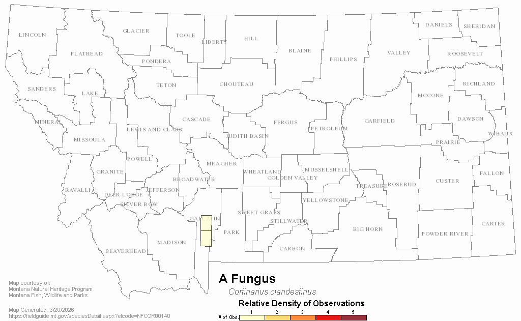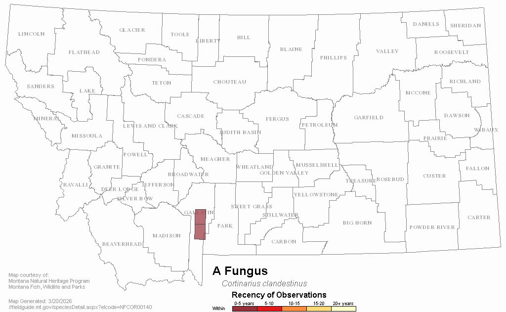 A Fungus — Cortinarius clandestinus.  Montana Field Guide.  .  Retrieved on , from