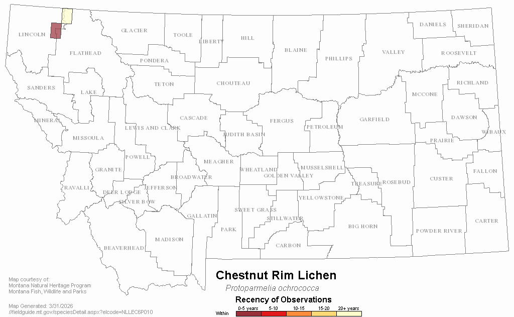 Chestnut Rim Lichen — Protoparmelia ochrococca.  Montana Field Guide.  .  Retrieved on , from