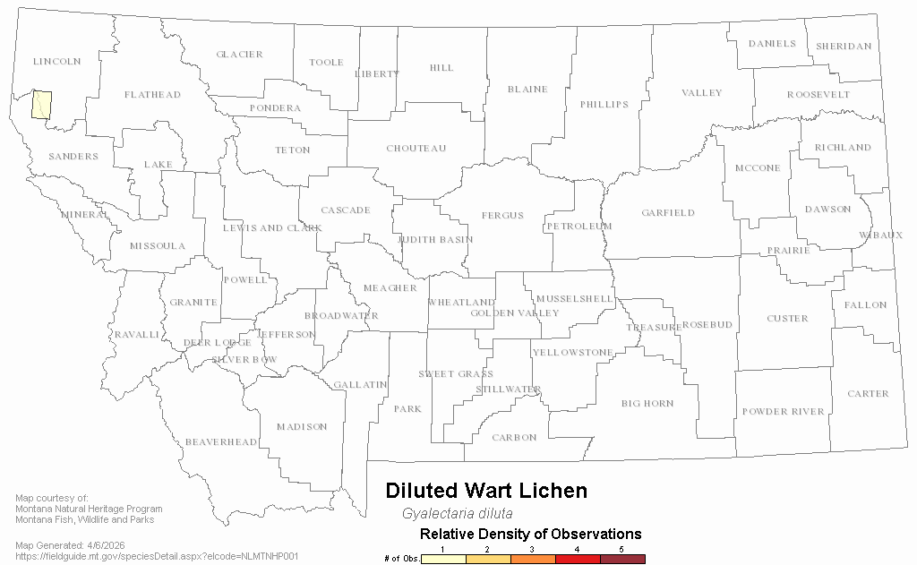 This species was first recognized in Montana. The Type specimen is from the Cabinet Mountains and is currently the only Montana occurrence.