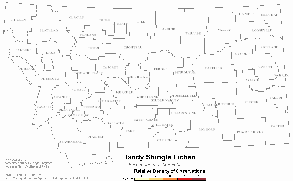 Handy Shingle Lichen — Fuscopannaria cheiroloba.  Montana Field Guide.  .  Retrieved on , from