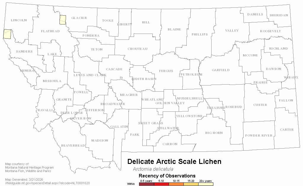 Delicate Arctic Scale Lichen — Arctomia delicatula.  Montana Field Guide.  .  Retrieved on , from