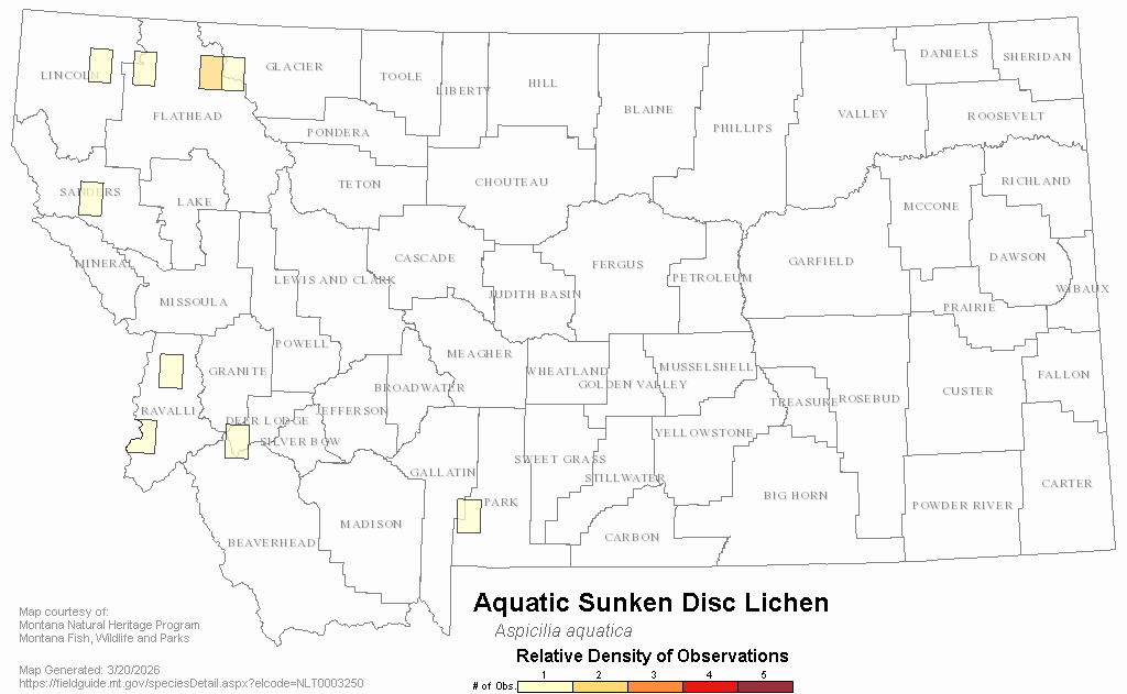 Aquatic Sunken Disc Lichen — Aspicilia aquatica.  Montana Field Guide.  .  Retrieved on , from
