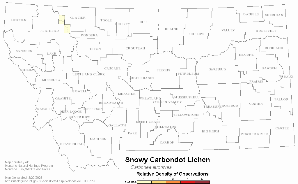 Snowy Carbondot Lichen — Carbonea atronivea.  Montana Field Guide.  .  Retrieved on , from