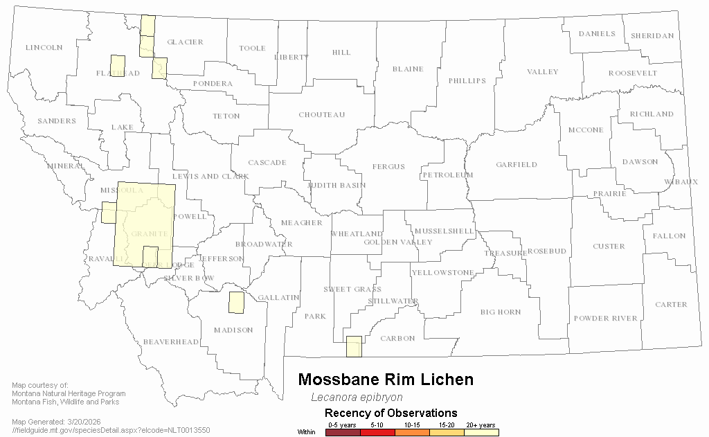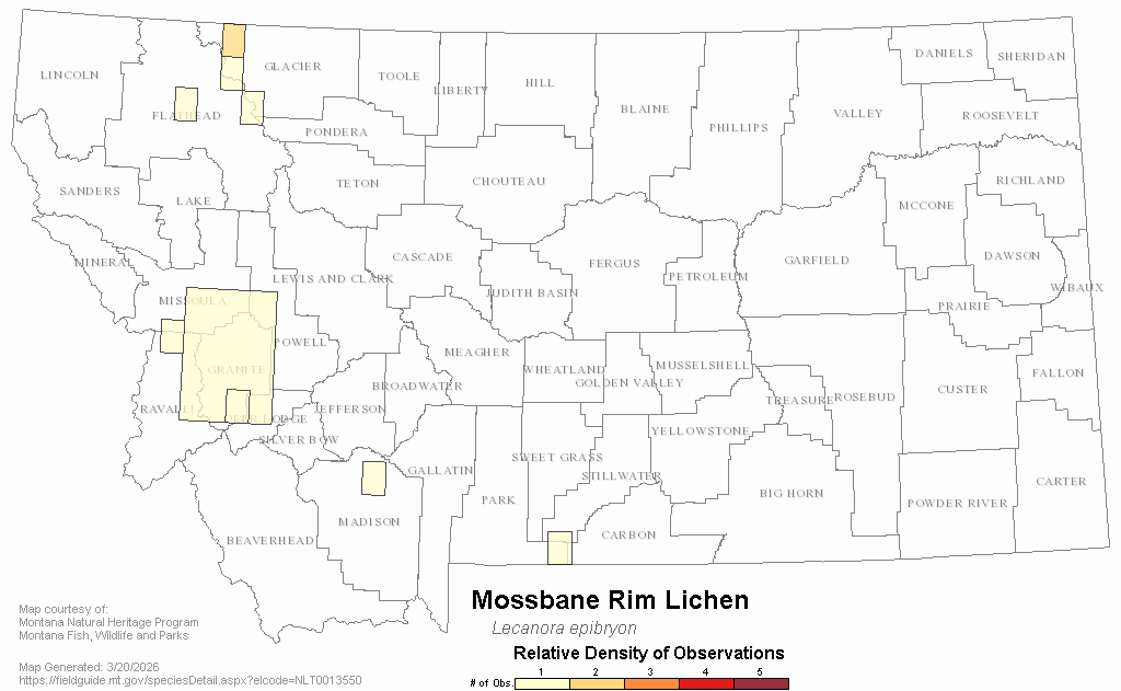 Mossbane Rim Lichen — Lecanora epibryon.  Montana Field Guide.  .  Retrieved on , from