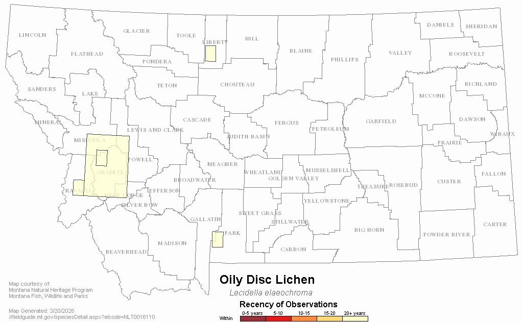 Oily Disc Lichen — Lecidella elaeochroma.  Montana Field Guide.  .  Retrieved on , from