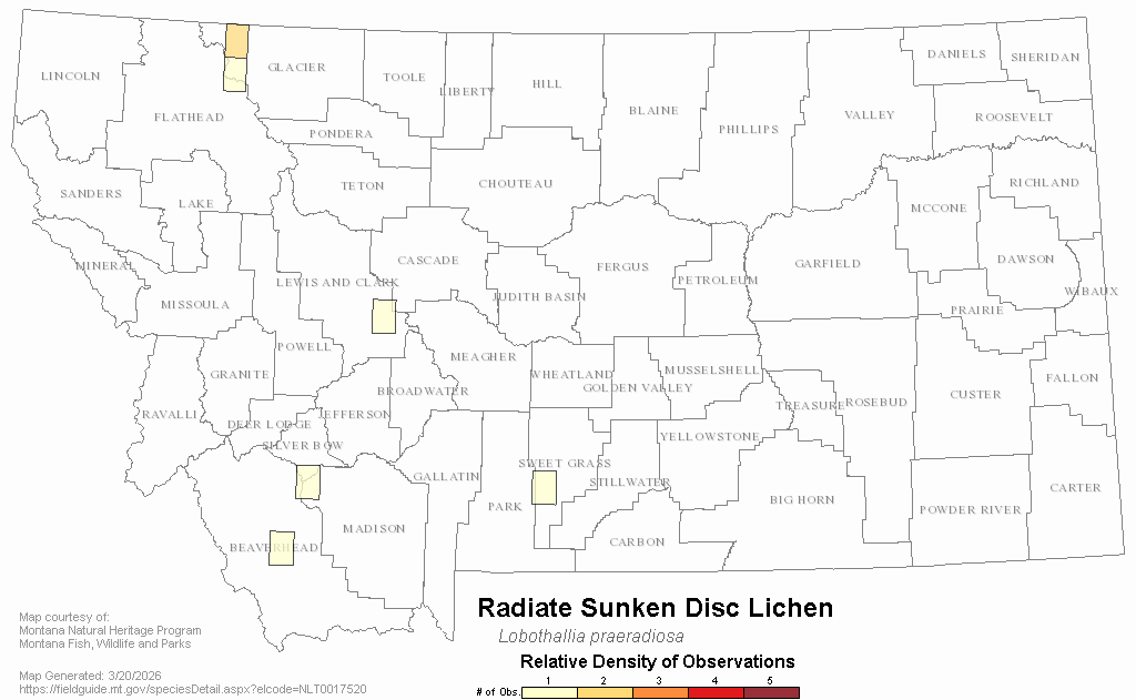 Radiate Sunken Disc Lichen — Lobothallia praeradiosa.  Montana Field Guide.  .  Retrieved on , from