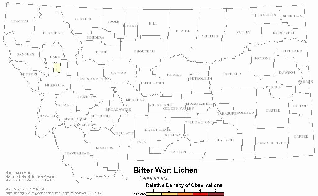 Bitter Wart Lichen — Lepra amara.  Montana Field Guide.  .  Retrieved on , from