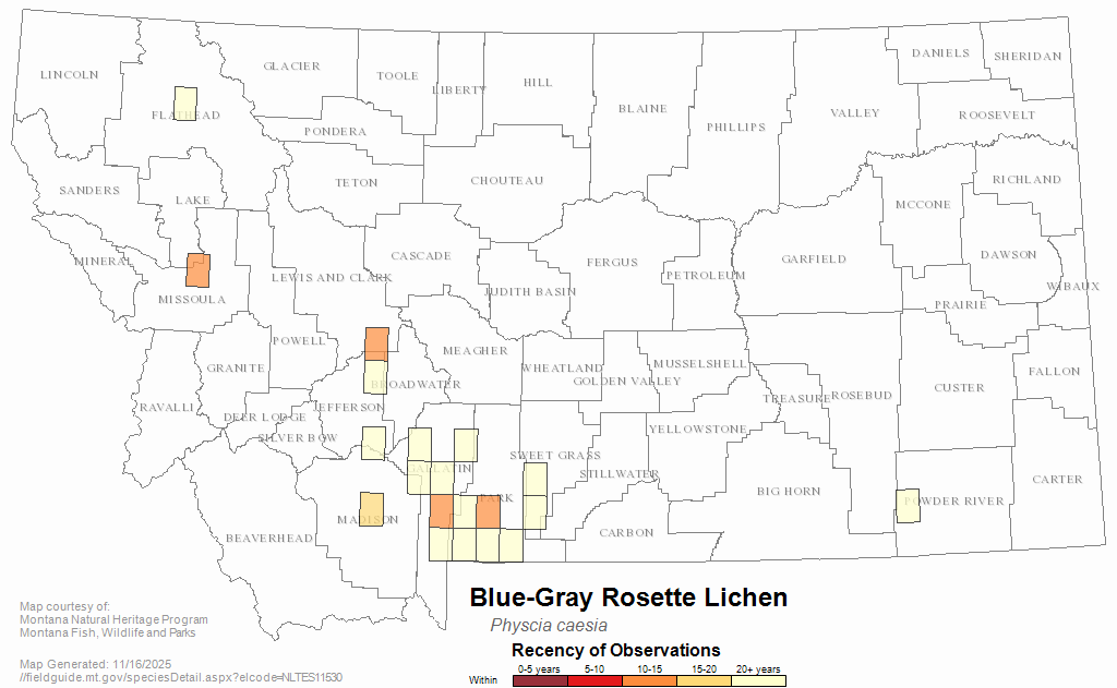 Salix, J.L. 2004. Lichens and their distribution in Lewis & Clark Caverns State Park. M.Sc. Thesis. Bozeman, MT: Montana State University. 74 p.