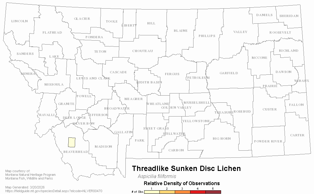 Threadlike Sunken Disc Lichen — Aspicilia filiformis.  Montana Field Guide.  .  Retrieved on , from