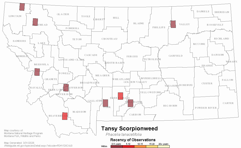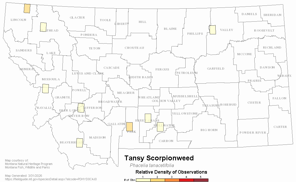Tansy Scorpionweed — Phacelia tanacetifolia.  Montana Field Guide.  .  Retrieved on , from